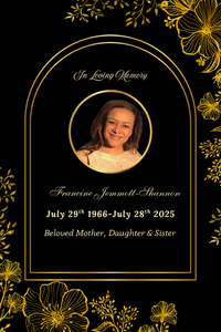 Celebration of Life Memorial Service for Ms. Francine Renee Shannon will be held Sunday, August 10, 2025, at 11:00 AM, at Eppinger & Lewis Funeral Home, 1039 3rd St, Stone Mountain, GA 30083.