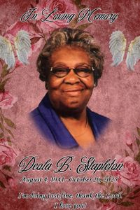 Funeral Services for Deola Stapleton, 84, of Merigold, Ms will be held Saturday, November 1, 2025 at 11am at Mt. Olive MB Chuch 202 North Jones, Cleveland, Ms with burial following in Merigold Cemetery under the…