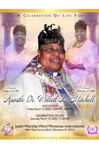 Send flowers to the service of Pastor Willett L. Mitchell