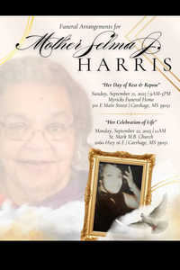 Funeral: Galillee MB Church Wednesday November 05, 2025 @11:30 am Visitation: Myricks Funeral Home Carthage, MS Tuesday November 04, 2025 9am to 5pm Internment: Galilee Church Cemetery Carthage, MS