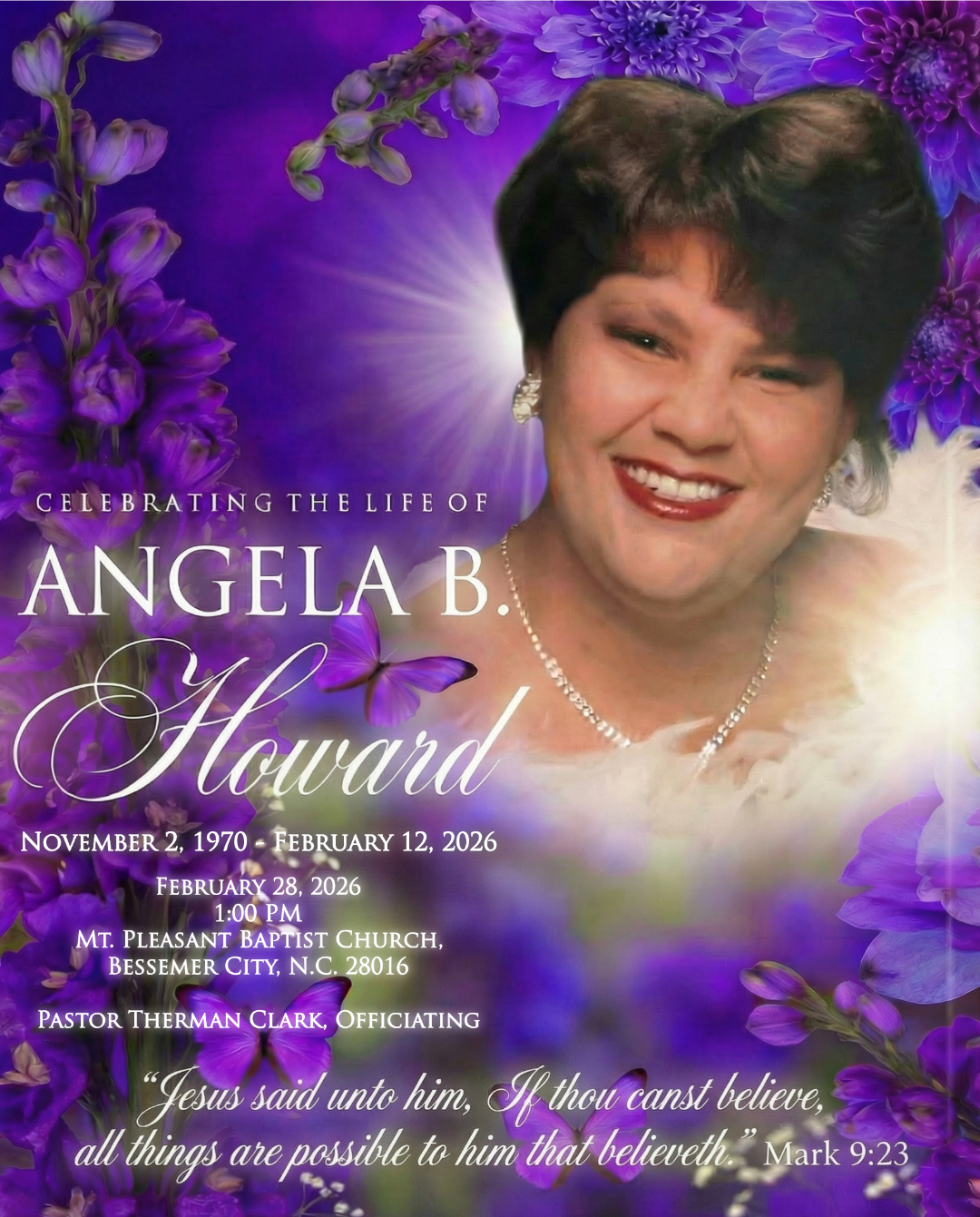 Send flowers to the service of Angela Bell Howard