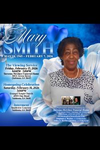 On February 7th, 2026, God called her home to her eternal resting place. She is proceeded in death by her husband, Willie James Smith Sr., brothers John Golden, Edward Miller, sisters, Shirley Ann Horton, and Earnestine Gertman.