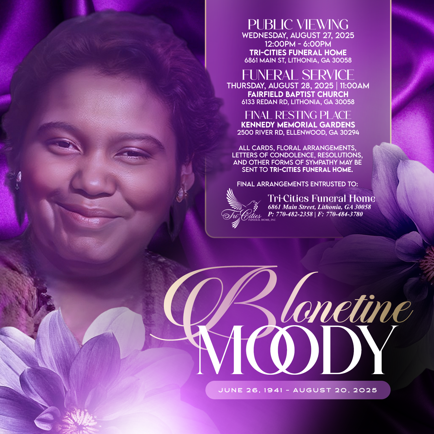 Send flowers to the service of Blonetine Moody