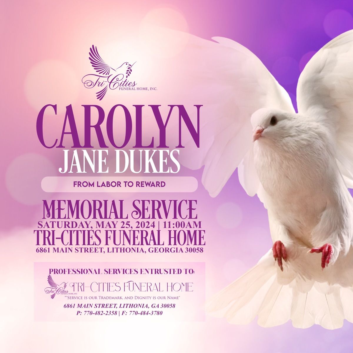 Memorial Service: Saturday, May 25, 2024 11:00AM