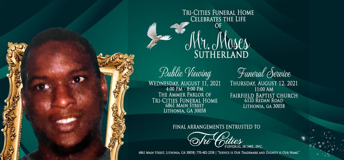 PUBLIC VIEWING Wed, Aug 11, 2021 4pm to 8pm THE AMMER PARLOR OF TRI-CITIES FUNERAL HOME 6861 Main Street Lithonia, GA 30058