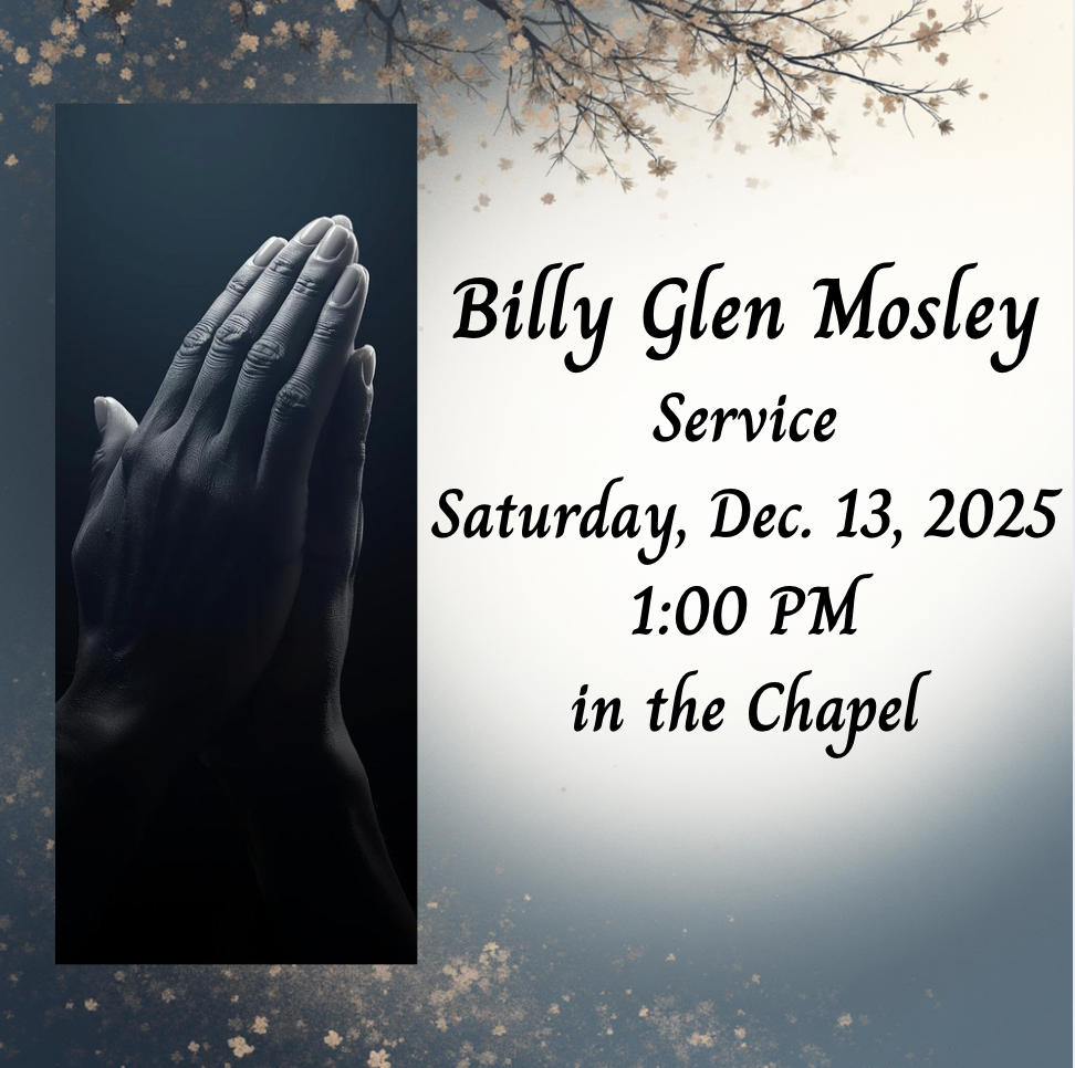 Billy Glen Mosley Service will be held, Saturday, December 13, 2025 at 1:00 PM in the Chapel