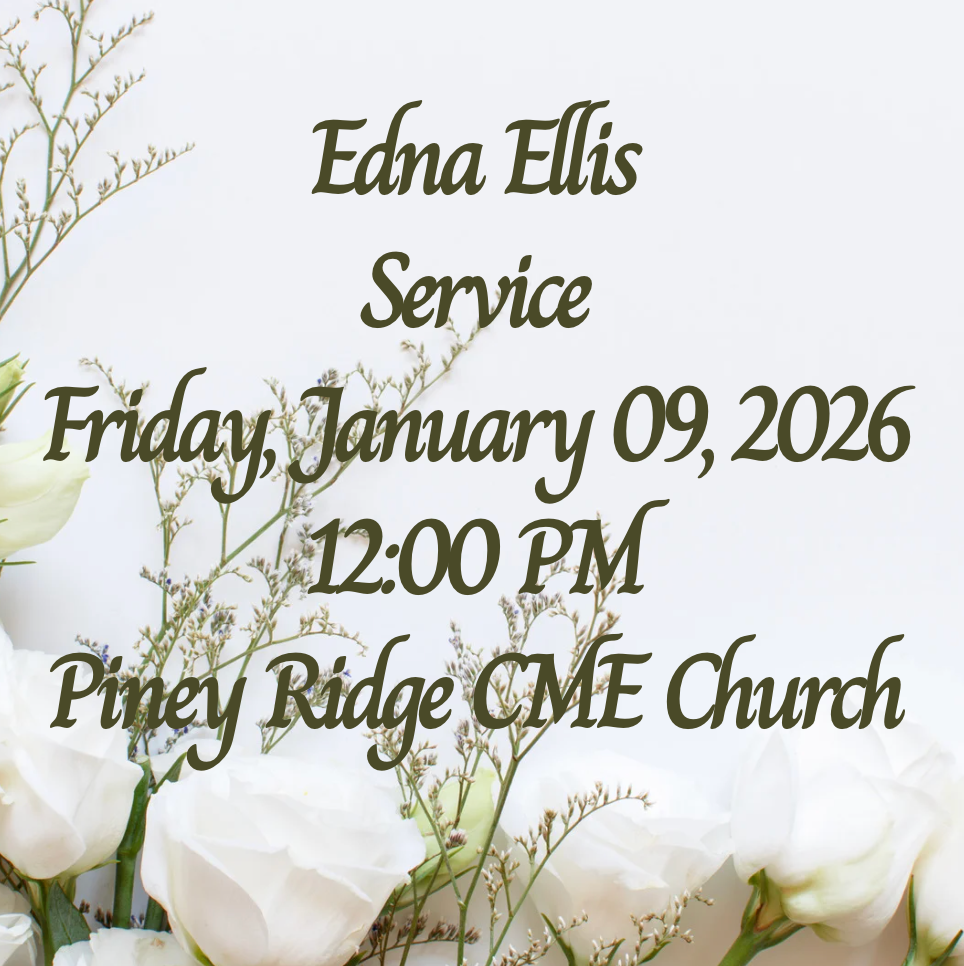 Edna Ellis service to be held on Friday, January 09, 2026, 12:00 PM at Piney Ridge CME Church, Union Mills.